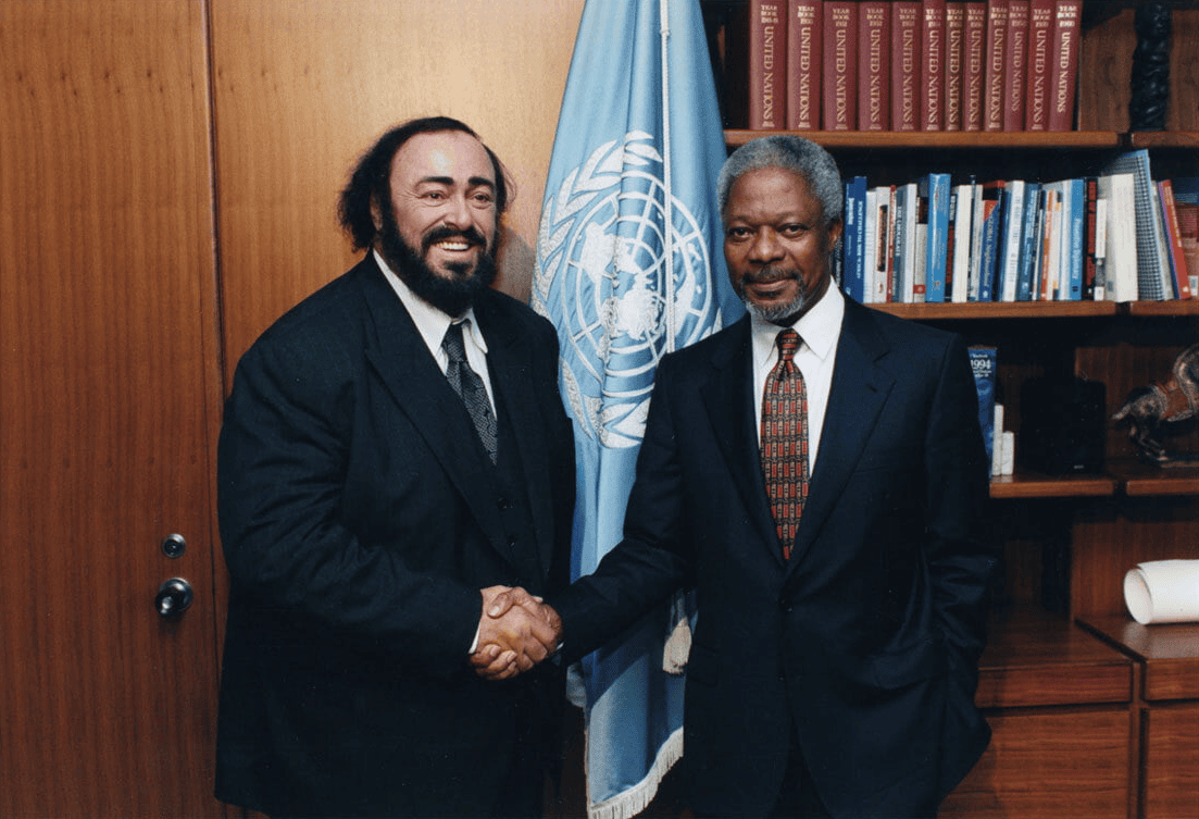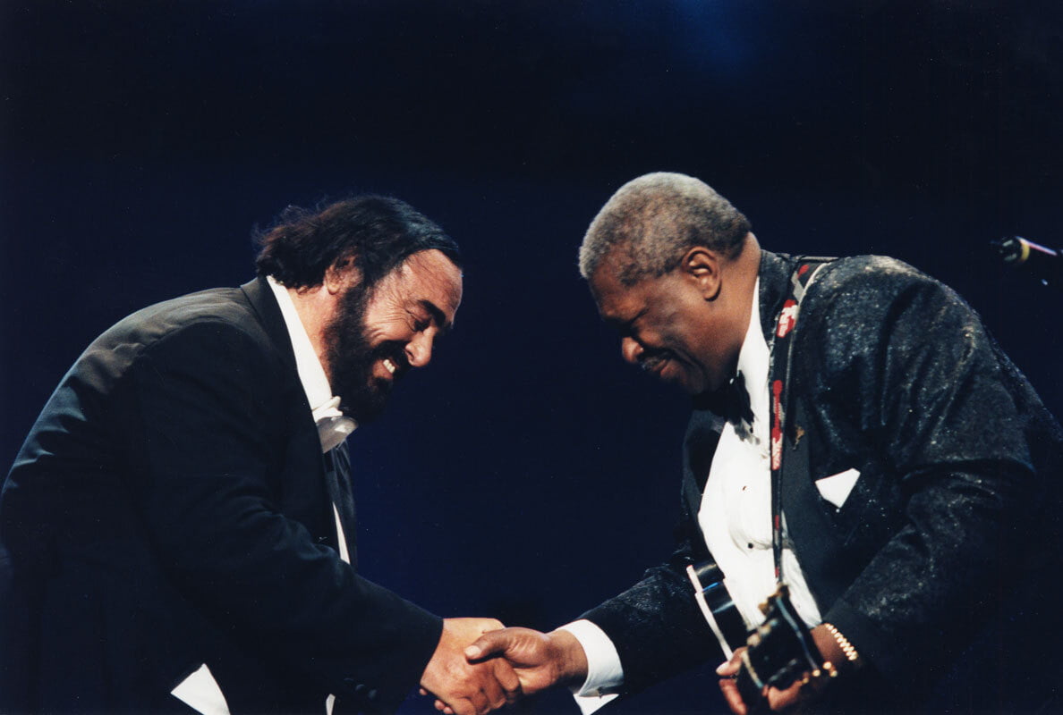 Il Maestro ha portato l’opera a platee sconfinate, spalancando le porte dei teatri tradizionali per andare incontro ad un nuovo e vasto pubblico. Ha compiuto innumerevoli apparizioni in televisione, si è esibito in concerti all’aperto, negli stadi e arene: una carriera eclettica che ha toccato corde molto diverse nel mondo della musica. Il suo longevo successo fu dovuto a due elementi fondamentali: prima di tutto, la sua voce straordinariamente potente con il suo timbro meravigliosamente unico e, in secondo luogo, l’eccezionalità della sua grande e radiosa personalità.